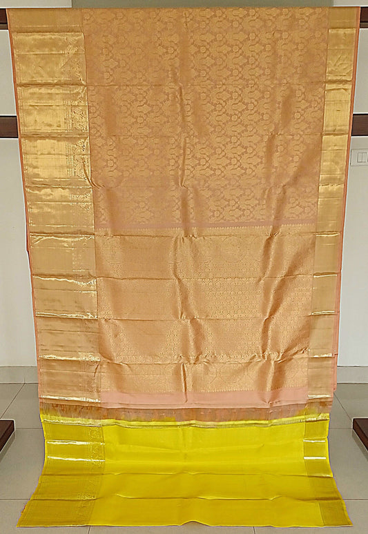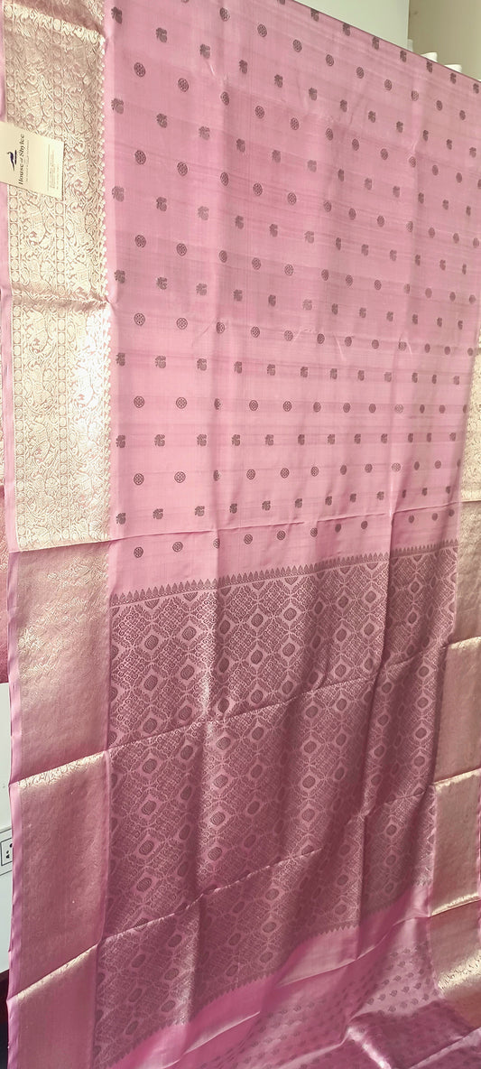 Baby Pink with Silver Zari Motifs/Border Venkatagiri Pure Silk saree