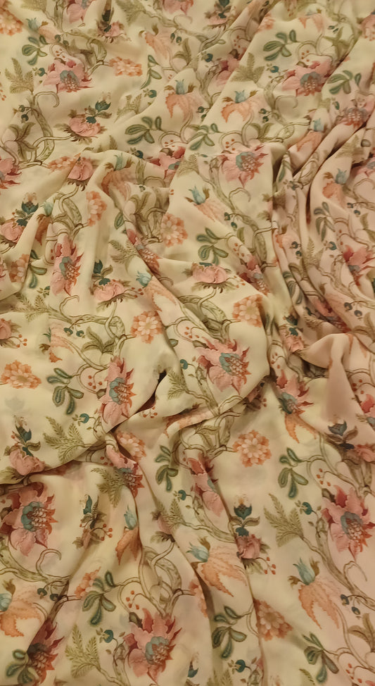 Beige, Indigo blue and Maroon Ajrakh Handblock print Mashru Silk Fabric
