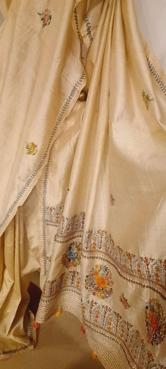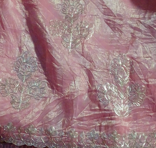 Baby Pink Crushed Tissue Organza Saree with Pitta work