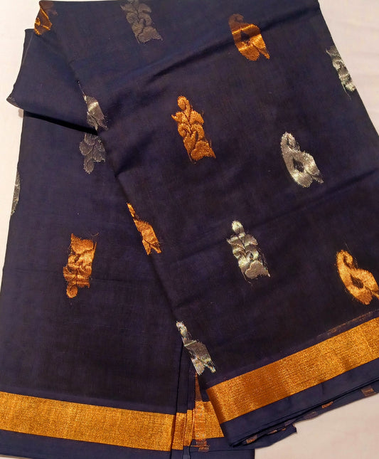 Black - Venkatagiri handloom traditional pure cotton saree with zari motifs and border