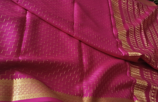 Rani Pink Zari Step Pattern Mysore Silk Saree