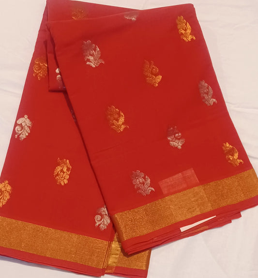 Red - Venkatagiri handloom traditional pure cotton saree with zari motifs and border