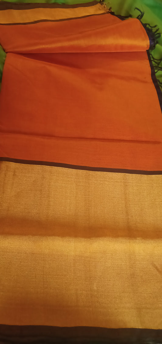 Tangerine Orange with Dark Blue Tisse Border/Pallu Patur Silk Cotton Saree