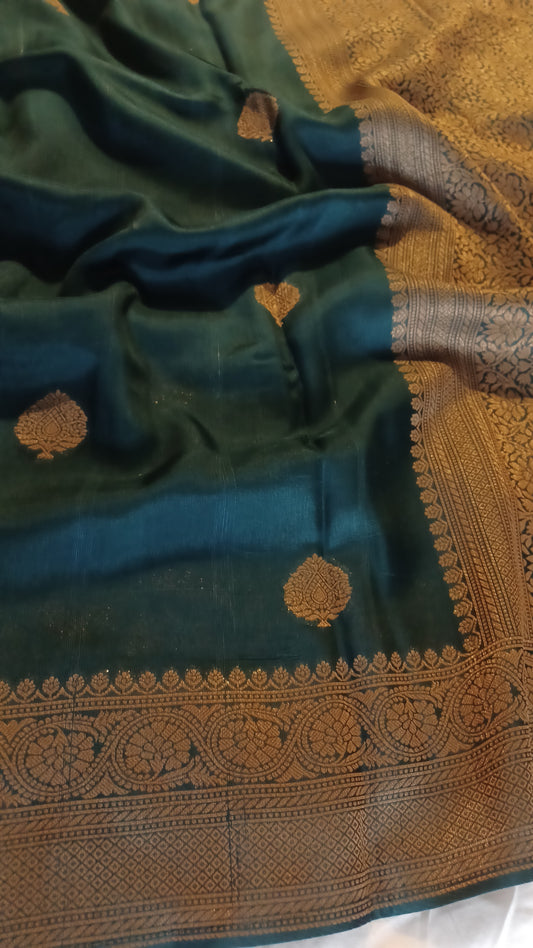 Teal Blue Banaras Semi Raw Silk (Dupion) Saree