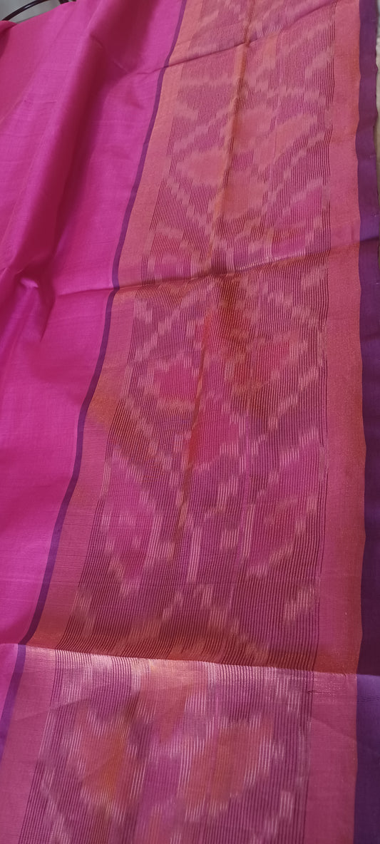 Pink body with dark blue ikkat woven border Patur Silk Cotton Saree