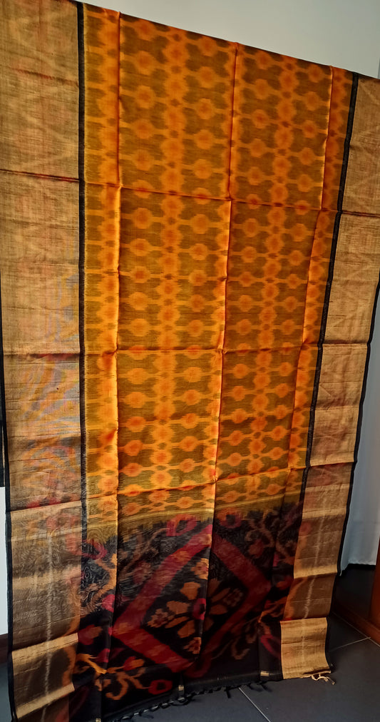 Yellow orange Pochampally Ikkat Sico (Silk cotton) Saree