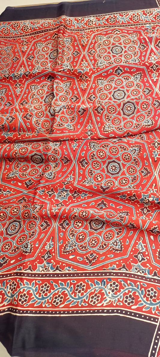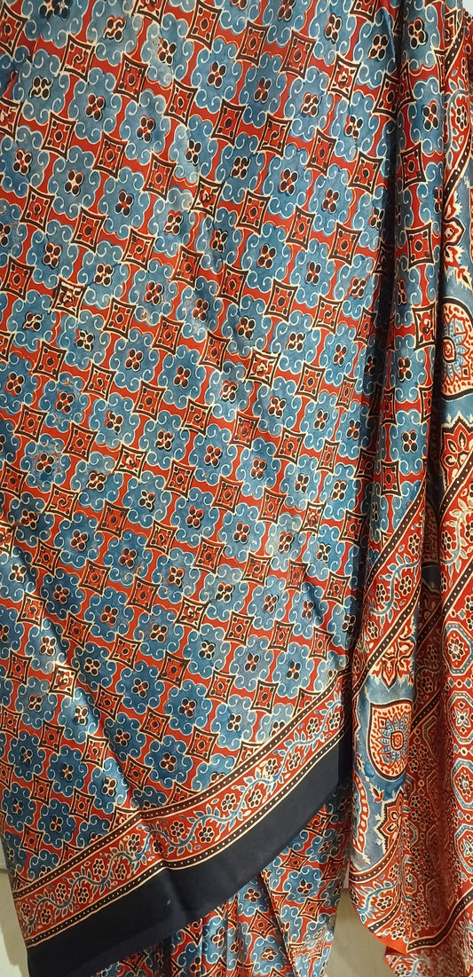 Red and Indigo - Modal Silk Ajrakh handblock print saree
