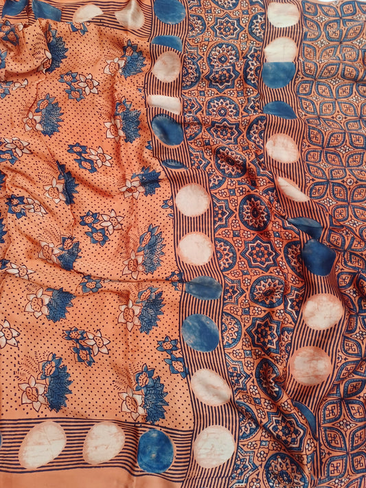 Orange - Modal Silk Ajrakh handblock print saree