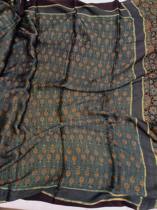 Dark Green - Modal Silk Ajrakh handblock print saree