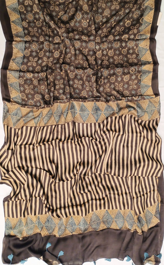 Brown - Modal Silk Ajrakh handblock print saree