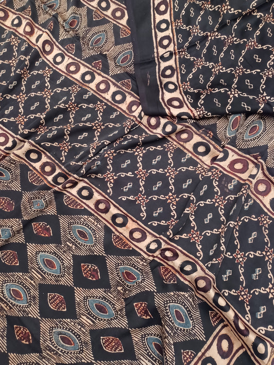 Black - Modal Silk Ajrakh handblock print saree