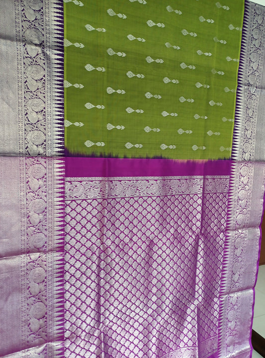 Mehendi Green Silver Zari Motifs with Purple border Venkatagiri Pure Silk saree