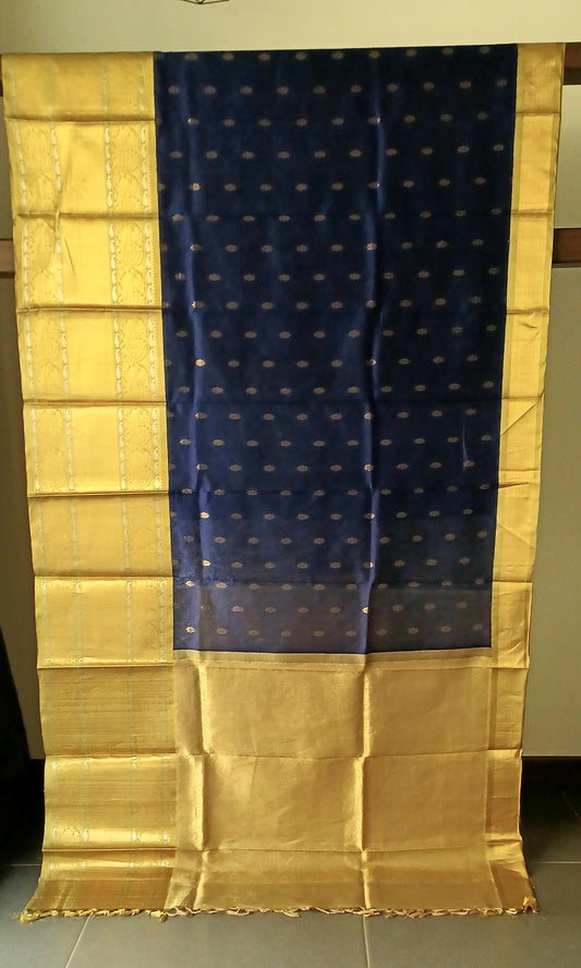 Kanchi Kuppadam saree in Navy blue with Mehandi green and zari woven big border