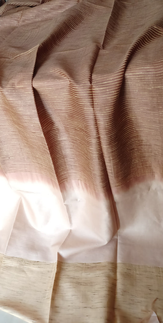 Tan Brown borderless with Beige Pallu Ghicha Tussar Saree