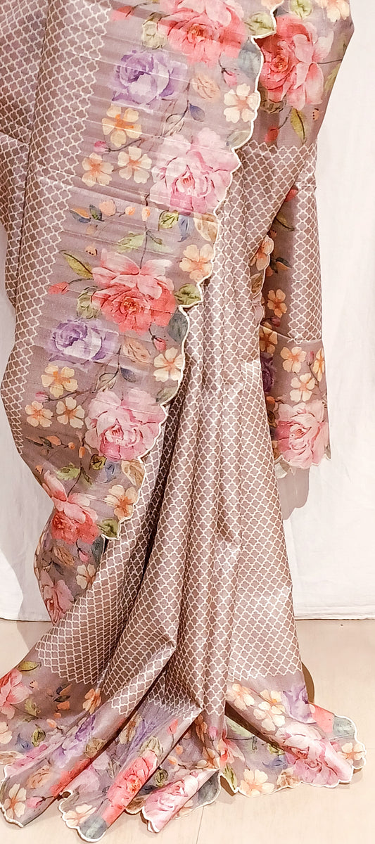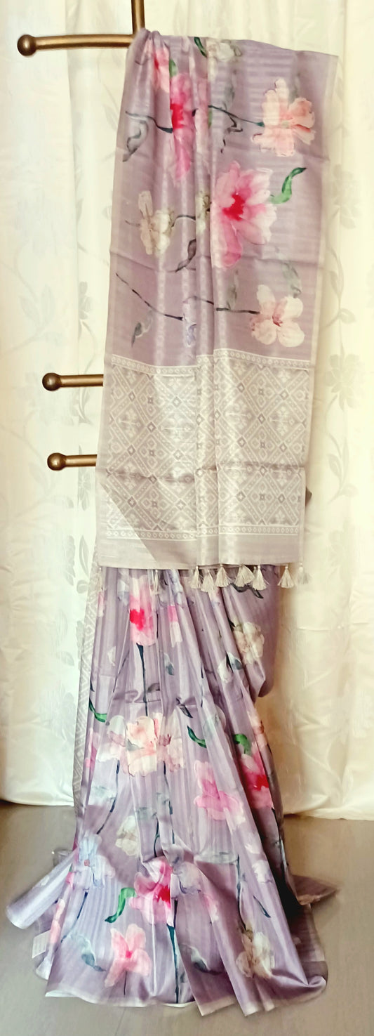 Light Mauve semi Tussar silk saree in digital prints and scallop border