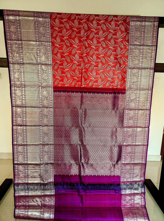 Maroon Red with Purple border Kanchipuram pure silk brocade weave saree