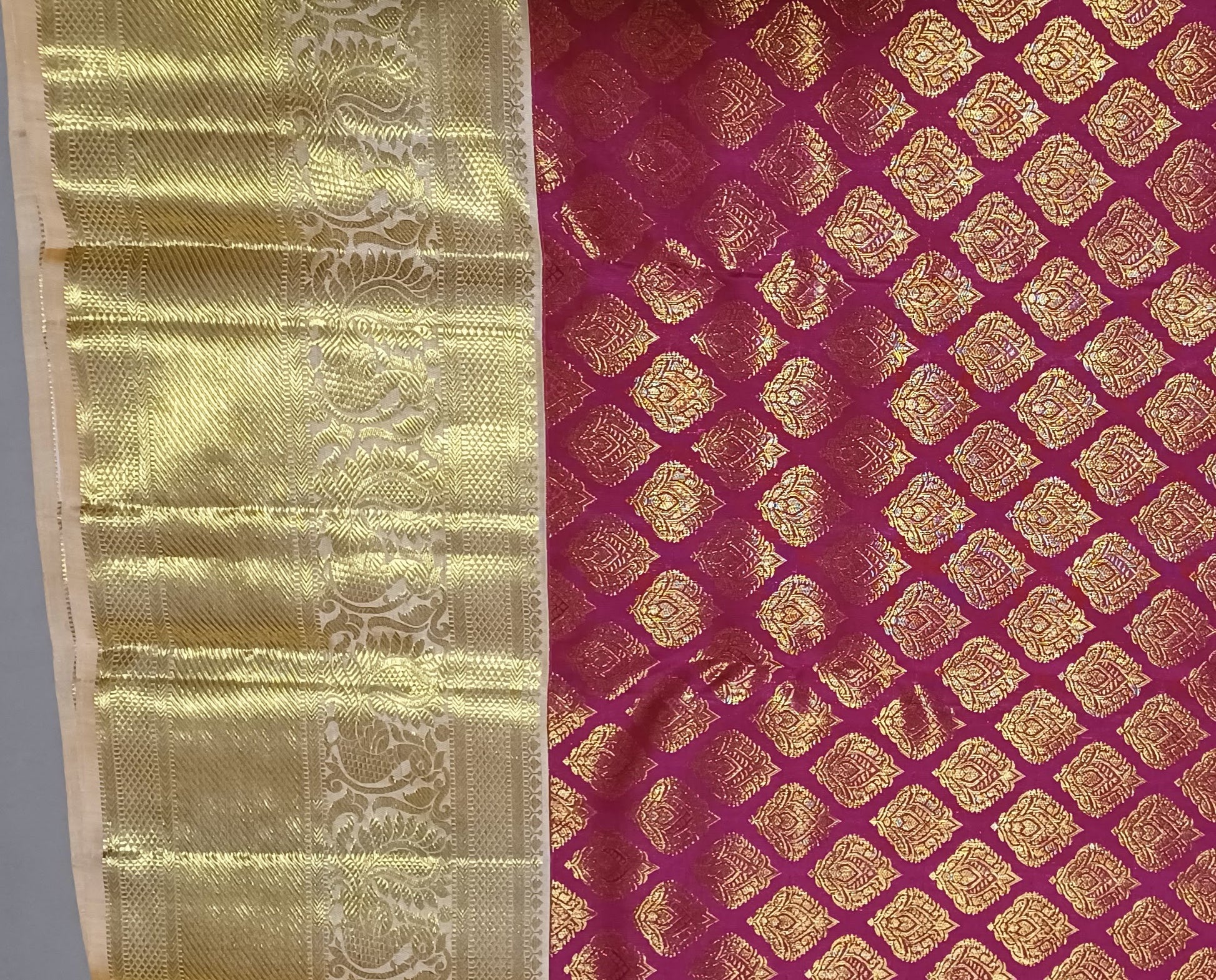 Dark Pink with Cream border Kanchipuram pure silk brocade weave saree