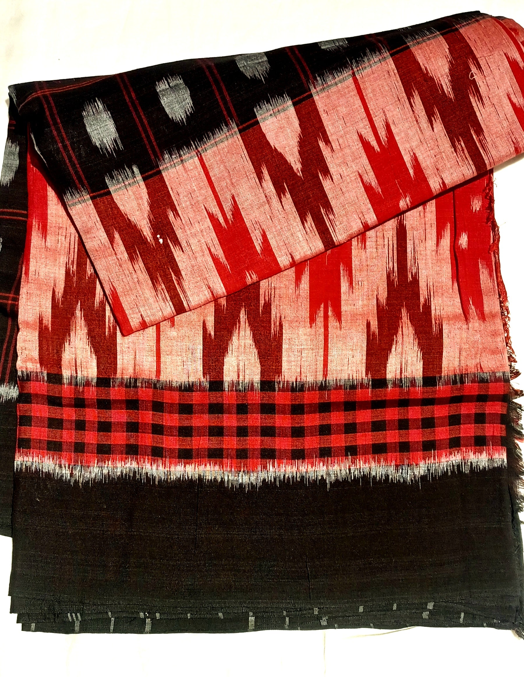 Red with Black Orissa Ikkat Tie and Dye Cotton Saree